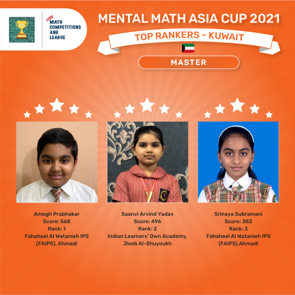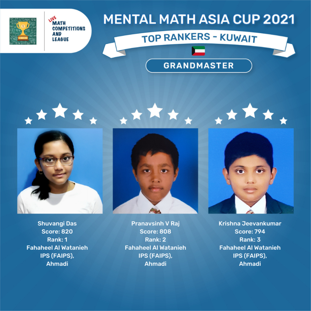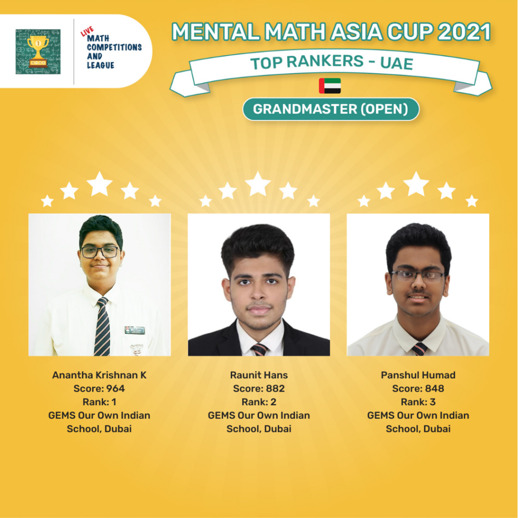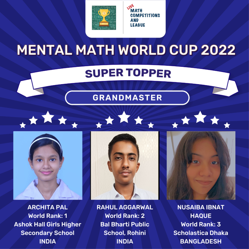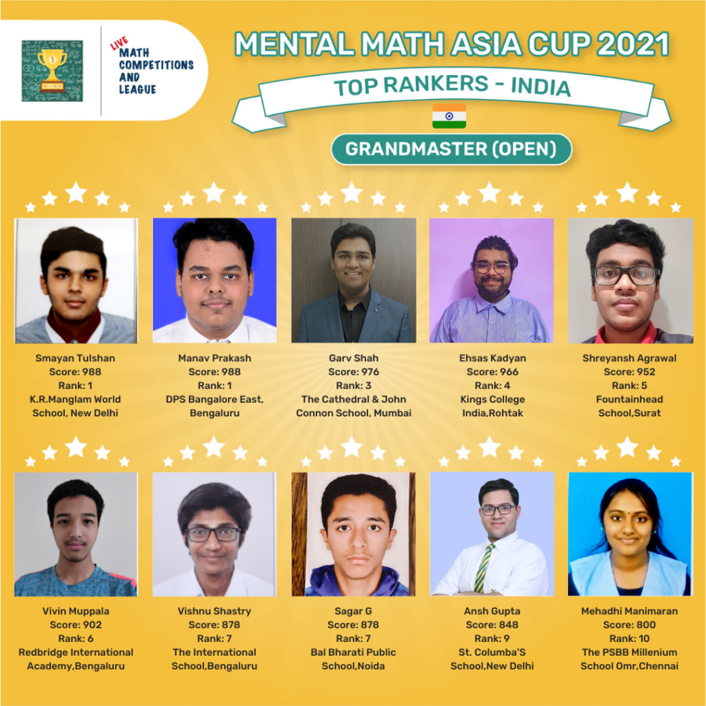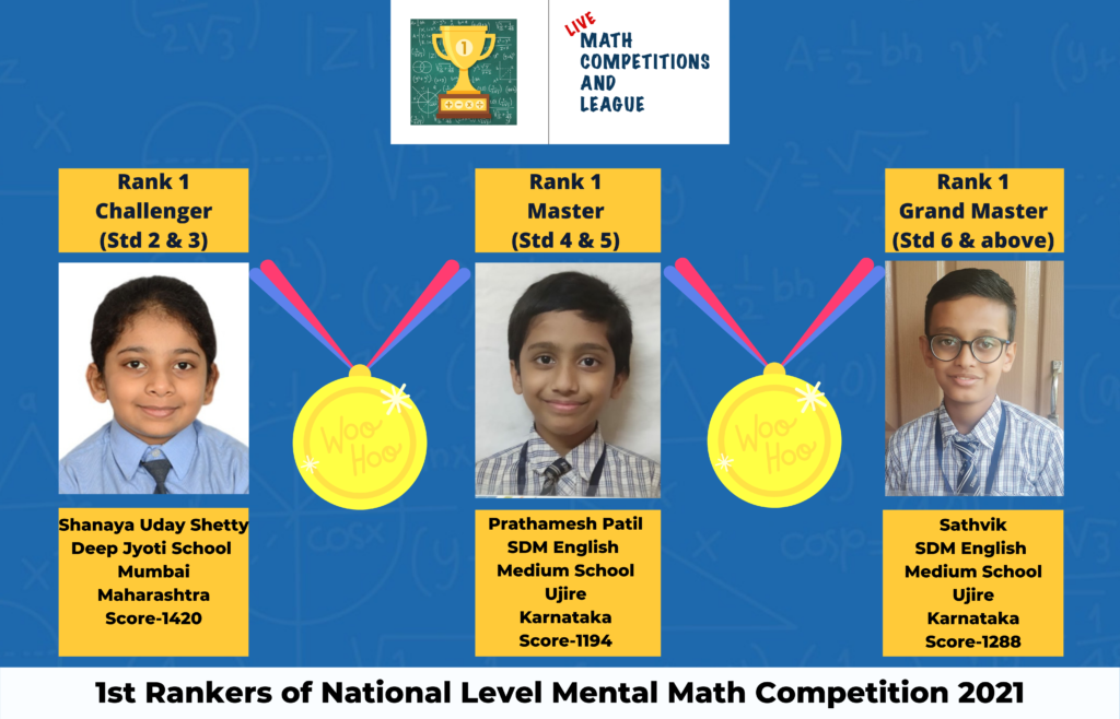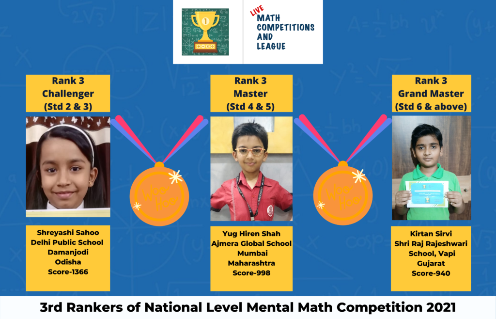Top 3 Rankers of National Level Mental Math Competition 2020/21