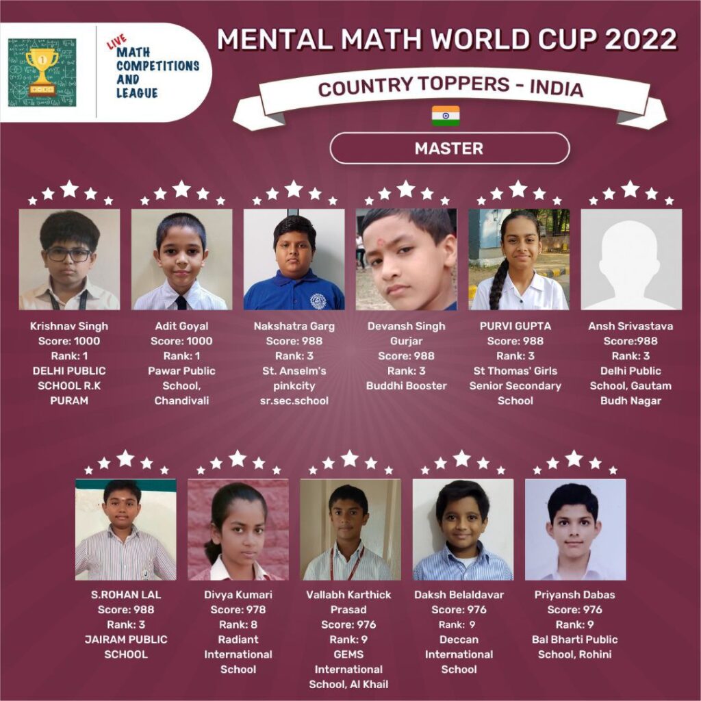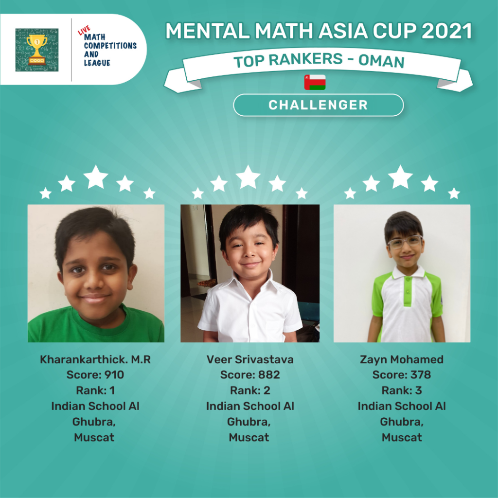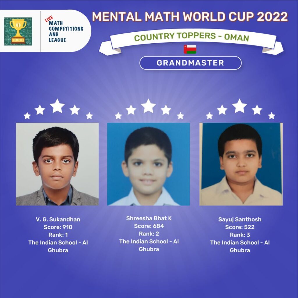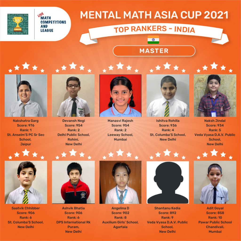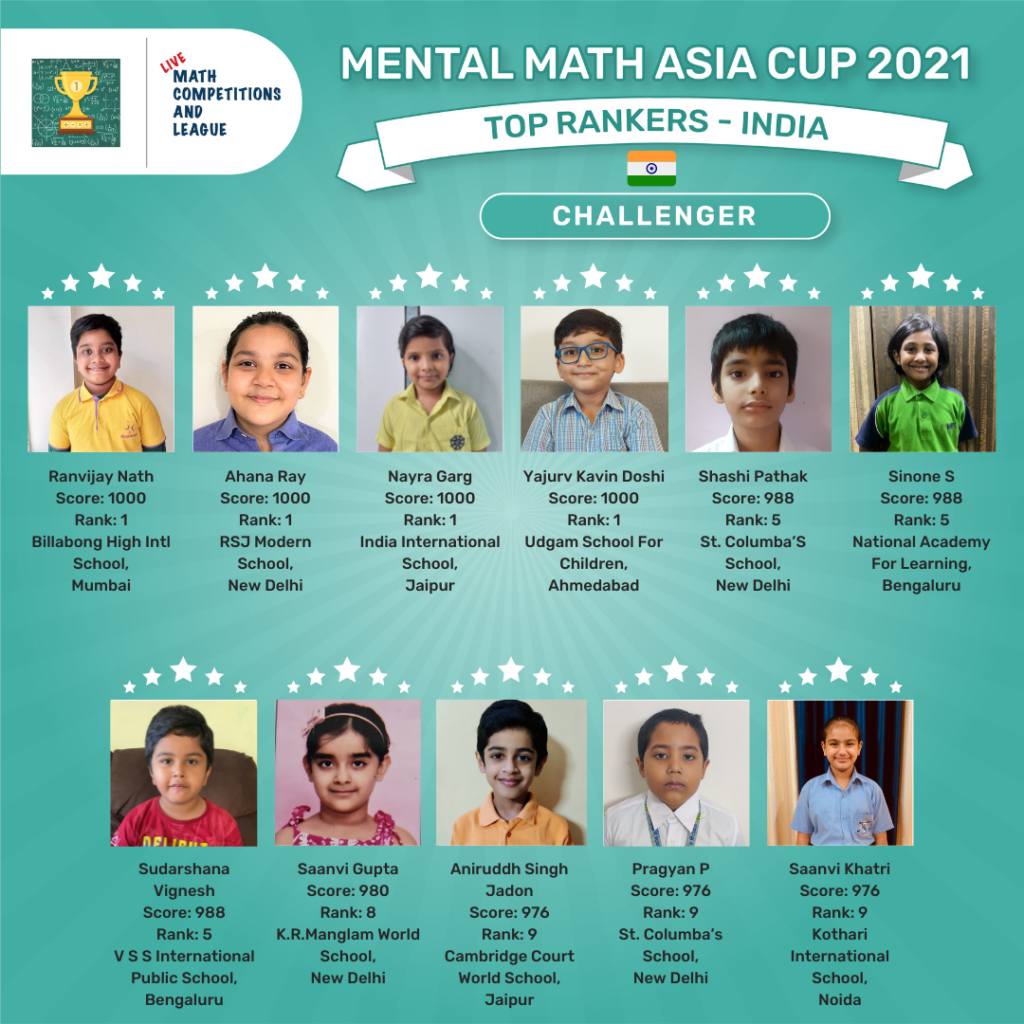 Top 3 Rankers of National Level Mental Math Competition 2020/21