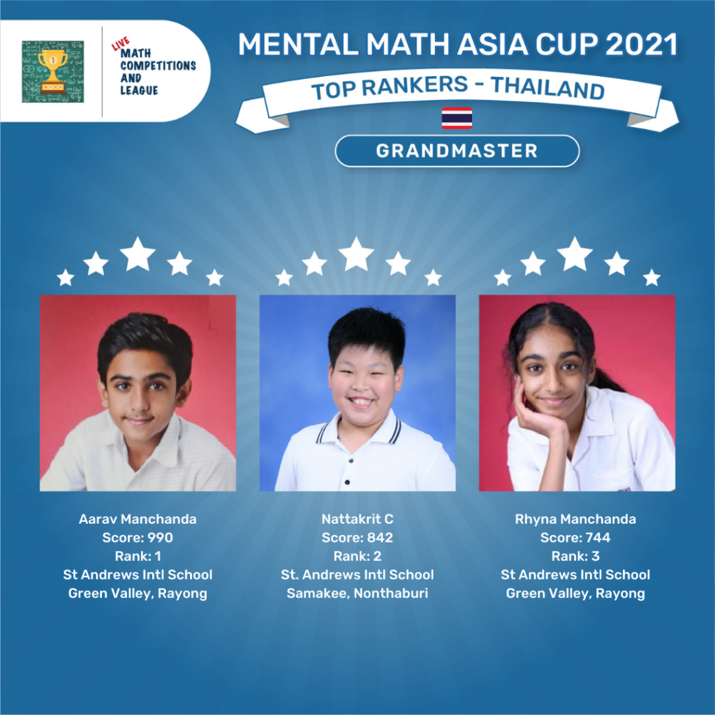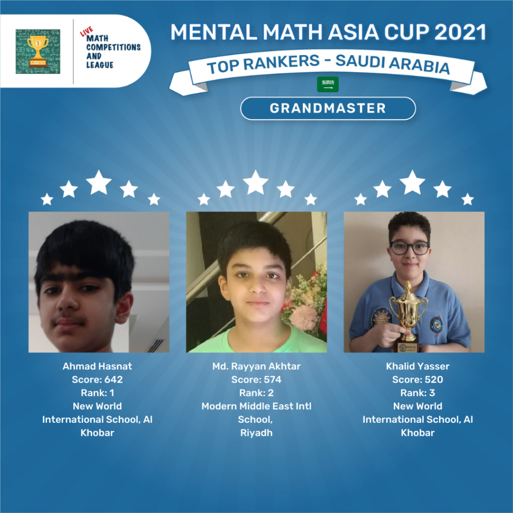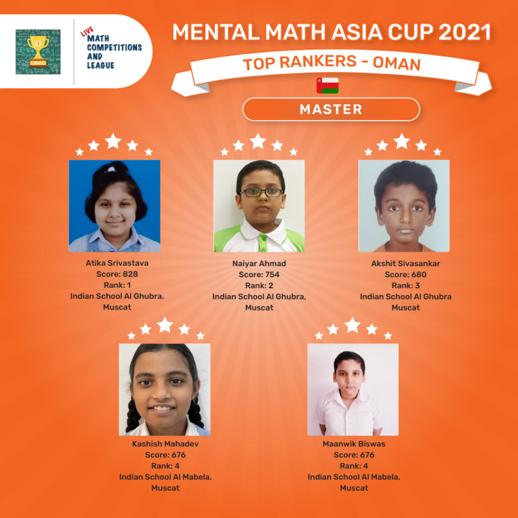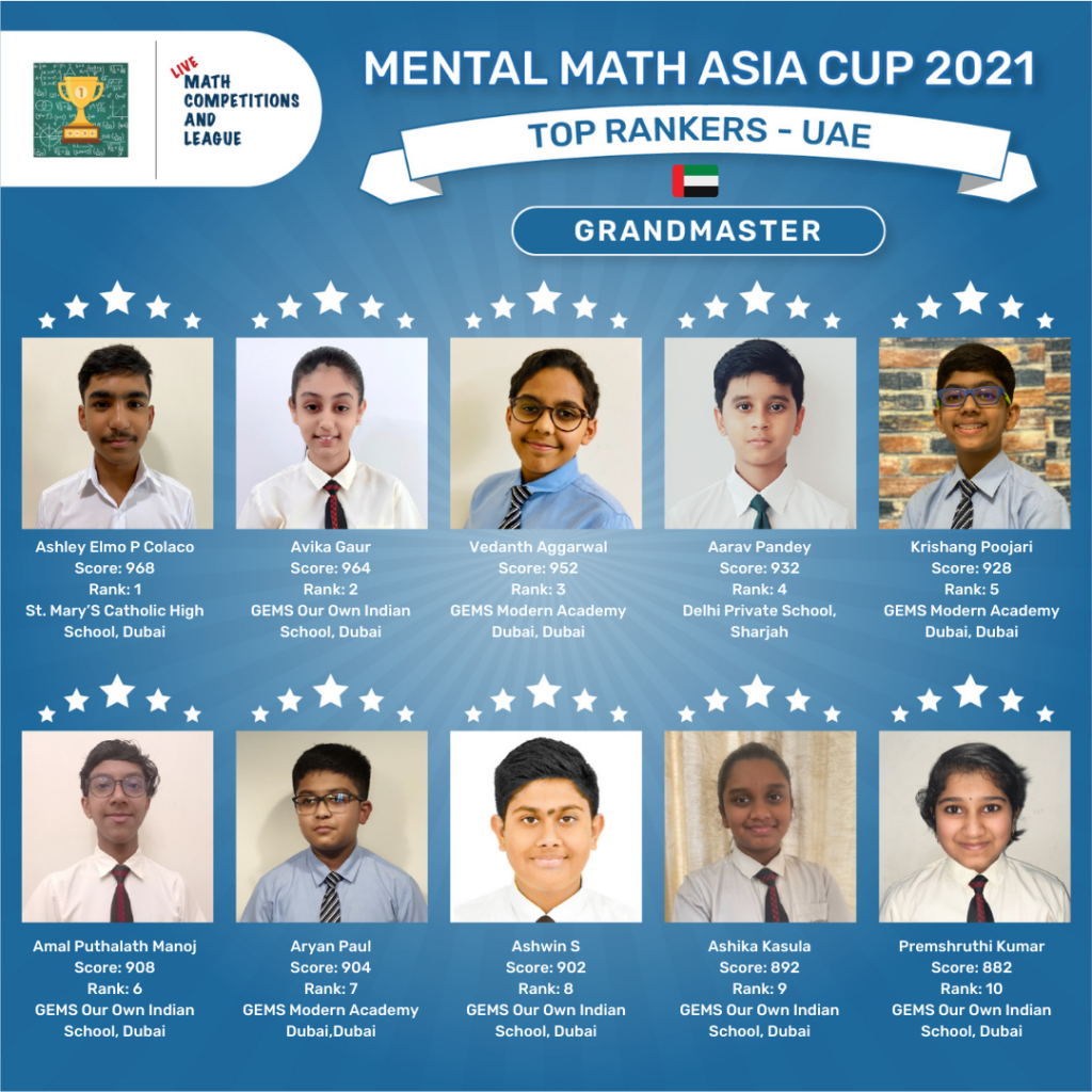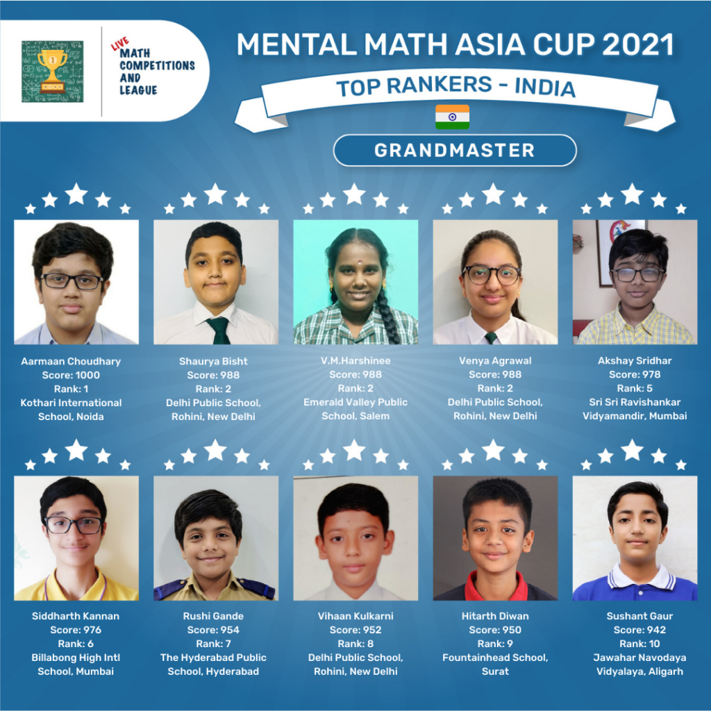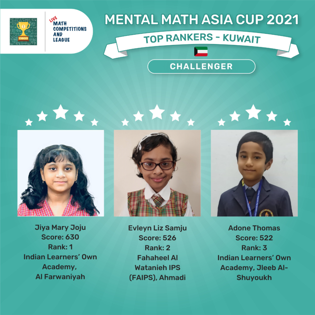 Top 3 Rankers of National Level Mental Math Competition 2020/21