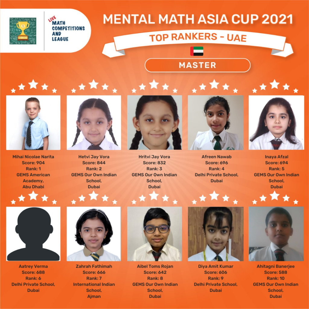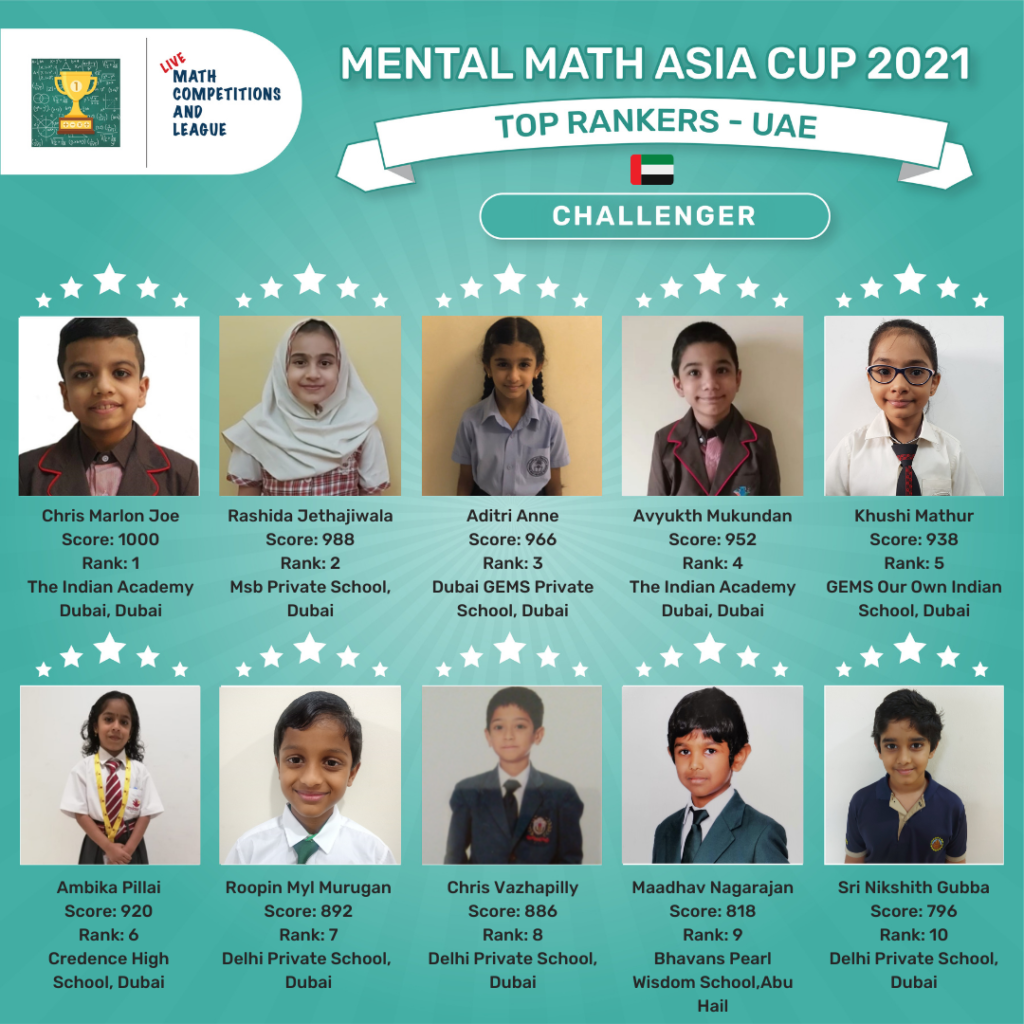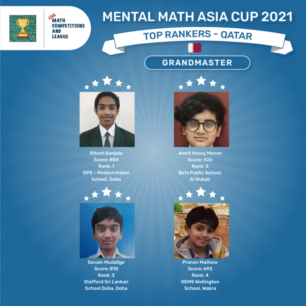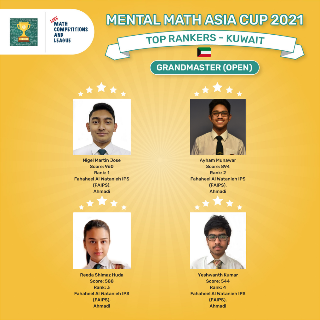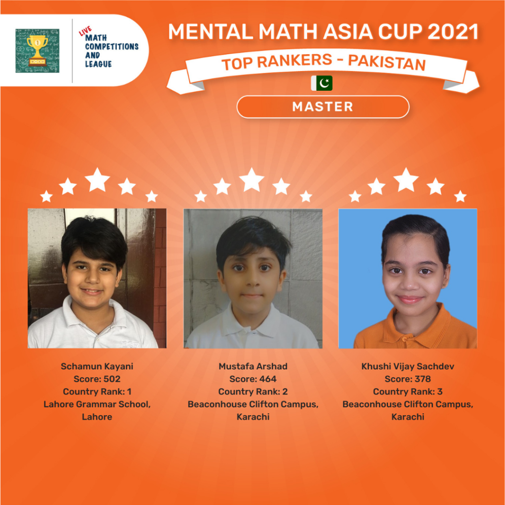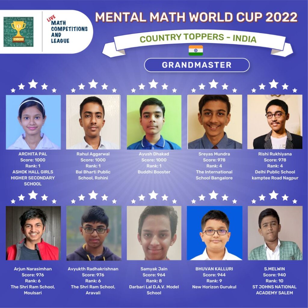Top 3 Rankers of National Level Mental Math Competition 2020/21