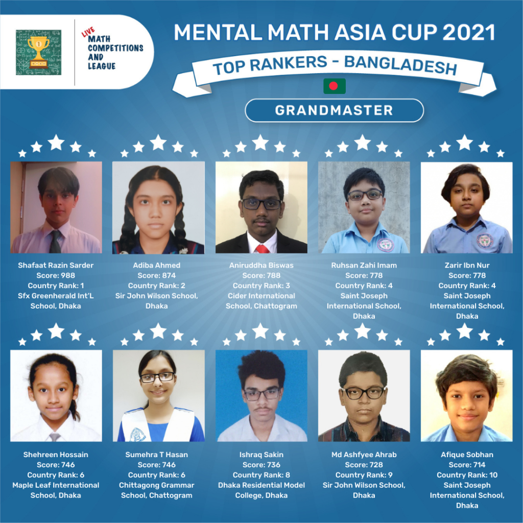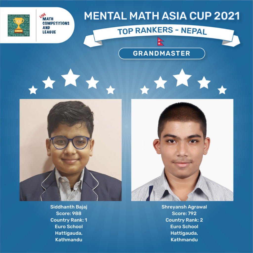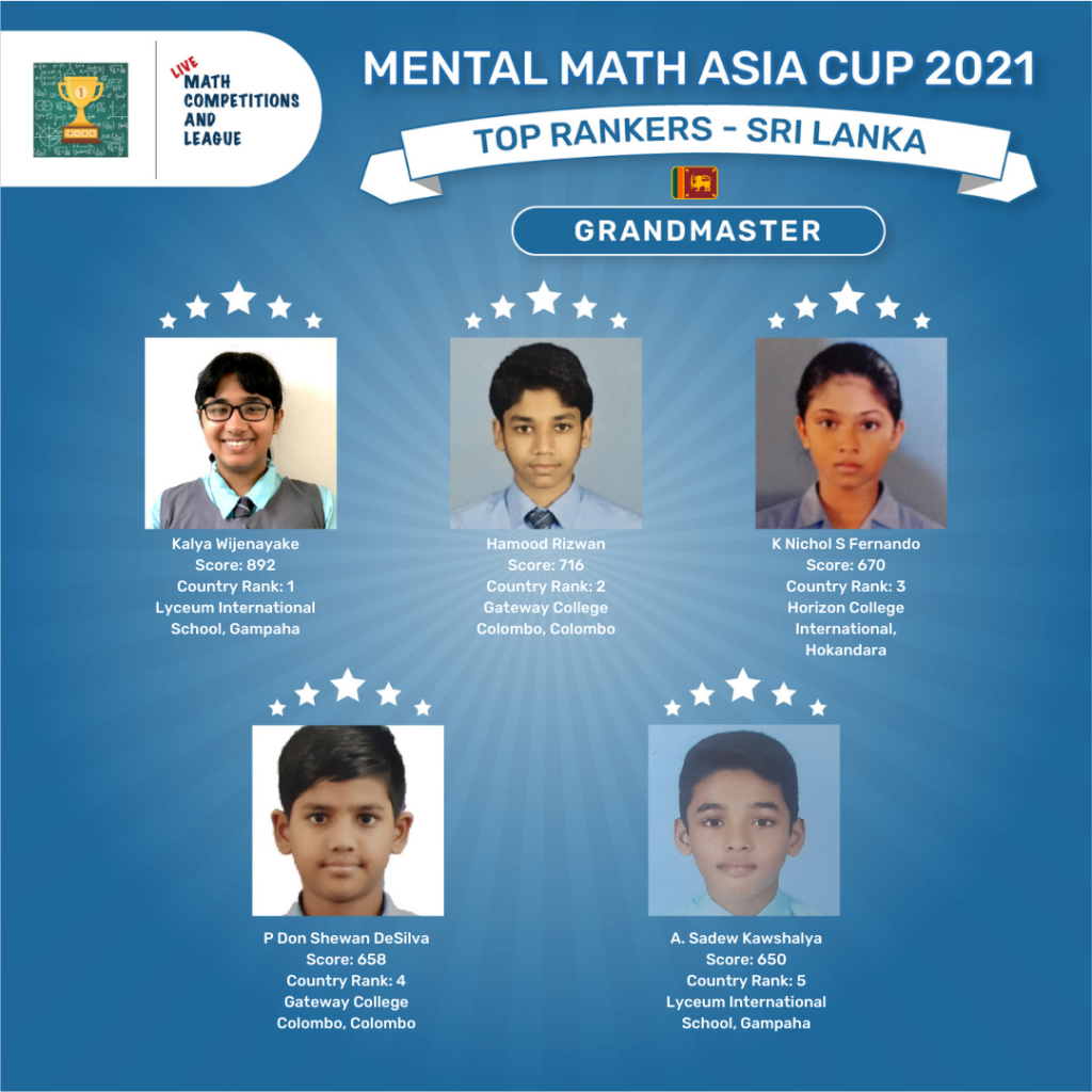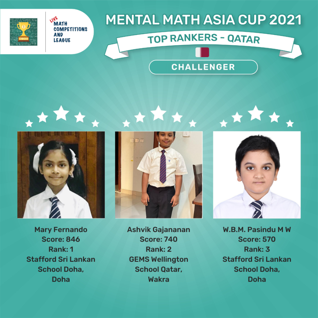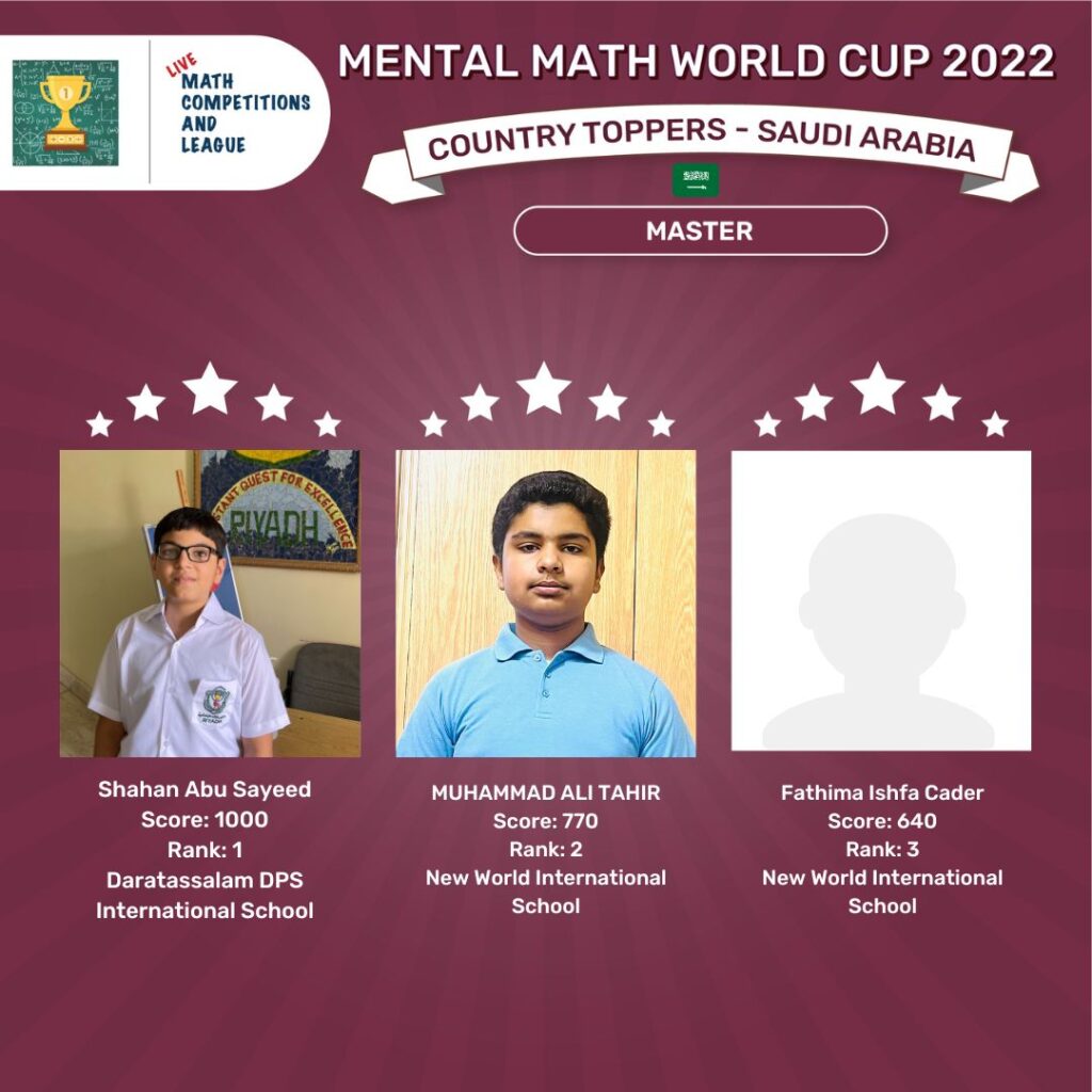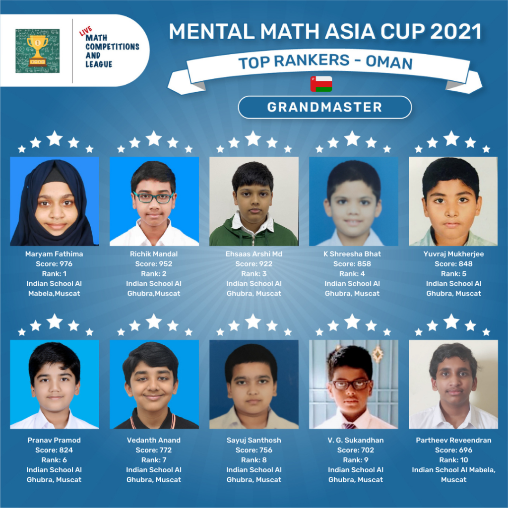 Top 3 Rankers of National Level Mental Math Competition 2020/21